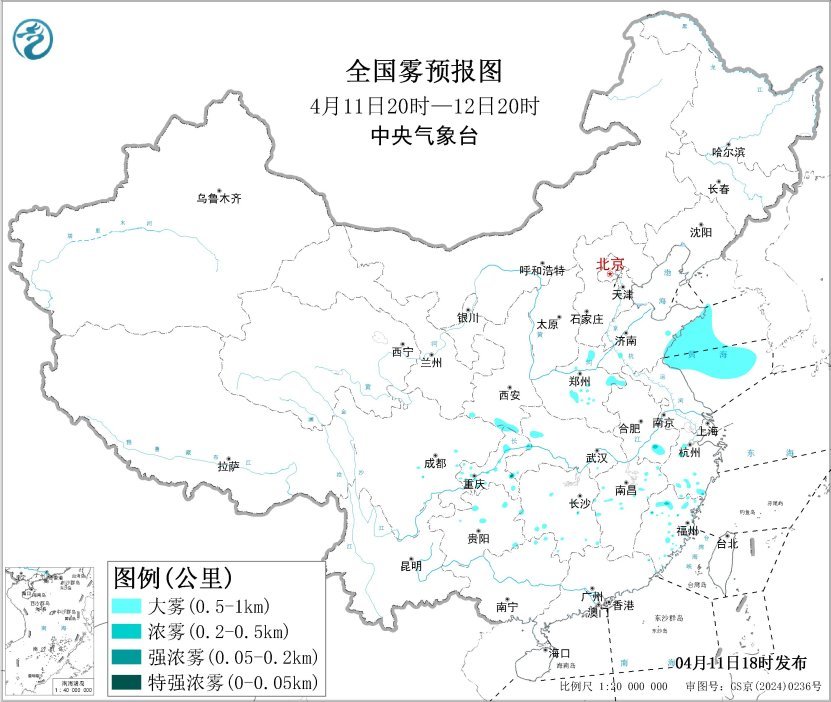 预计,11日夜间至12日白天,黄海中西部和南部海域将有能见度不足1公里的大雾;此外,11日夜间至12日上午,河南东部、重庆西部、福建东部等地的部分地区有大雾天气,局地有能见度不足500米的浓雾。