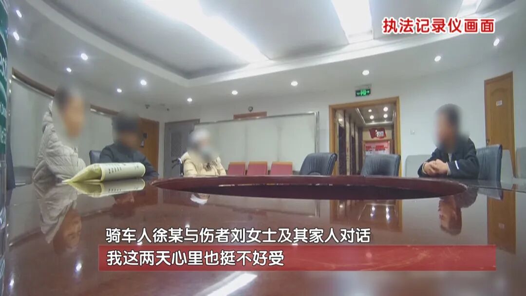 面对民警的追问,徐某无言以对。得知撞伤自己、随后逃离现场的骑车人被民警查获,刘女士和她的家人也立即赶到了交通队。双方在民警的调解下,坐到了一起。