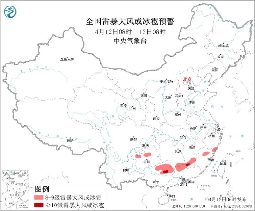 中央气象台今晨继续发布强对流天气蓝色预警:预计今天,江南东部和南部、华南北部、西南地区东部等地的部分地区将有雷暴大风或冰雹天气、短时强降水等强对流天气,广西北部、广东北部、江西南部等地局地将有10级以上雷暴大风,最大风力可达11级以上;江西南部、广西北部等地局地小时雨量大于50毫米;强对流的主要影响时段为午后至前半夜。